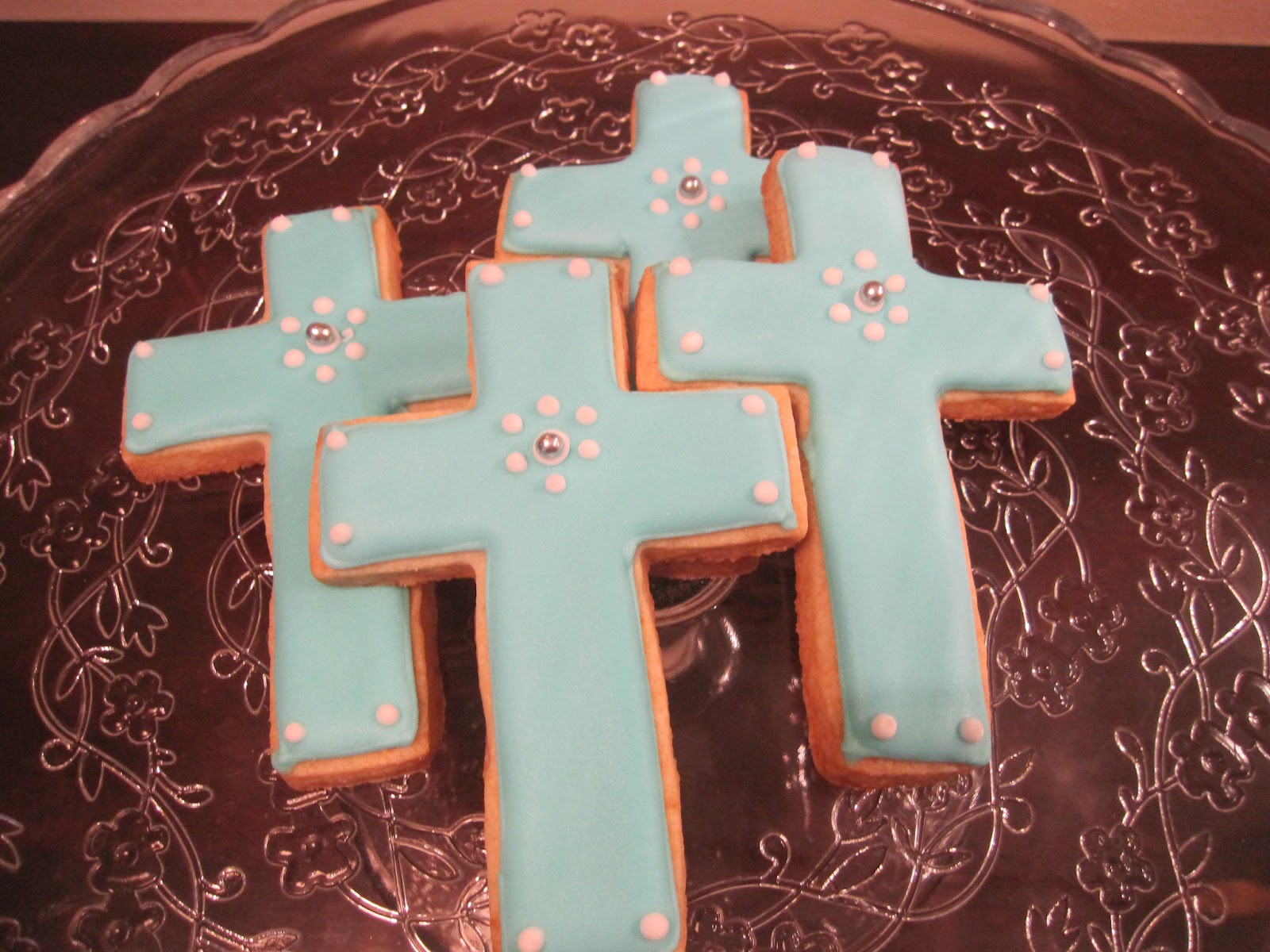 Estas galletitas tan delicadamente blancas son para Eugenia que hoy ha celebrado su primera comunión.